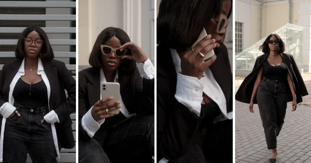 Work-appropriate all-black outfits benefit from clean lines and structure.